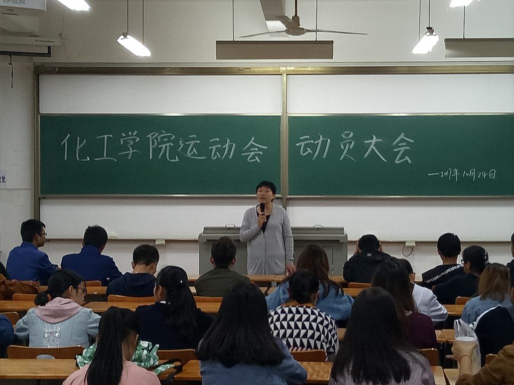 10月24日下午5点40,化工学院于六栋210教室召开运动会动员大会,此次大会旨在鼓舞运动会参赛人员,提高运动员士气。