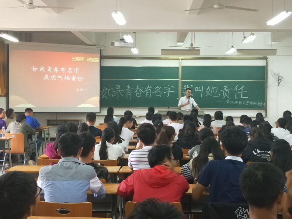 化工学院于9月30日下午两点在06-210开展了武汉纺织大学榜样人物宣讲。针对化工院新生们刚入大学时的迷茫心理,进行心理辅导和认知导向。