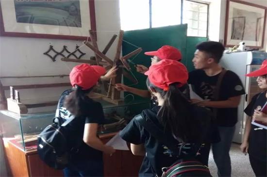 在来窑村文化广场旁的“靖远福康民俗博物馆”让实践团队的小伙伴眼前一亮,近现代的纺车令大家格外好奇,驻足只为弄清楚其运作过程。