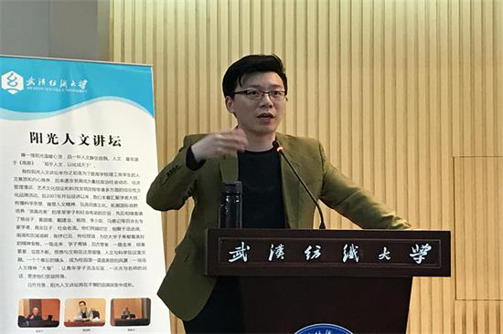 “要建立明晰的目标 寻求挖掘所学内容中的快感,同时也要保有好奇心,对未知一定要保持强烈的冲动感......”4月27日下午14:00在武汉纺织大学8栋国际学术报告厅,由校团委主办,化工学院承办的阳光人文讲坛的演讲台上,一位气宇轩昂的讲师正在给纺大学子做《青春核心价值》的演讲。这位集颜值与才华于一身的超级演说家,就是曾被余秋雨称作“全世界最会讲话的年轻人”以及曾获得国际大学生群英辩论会全场最佳辩手荣誉的陈铭。