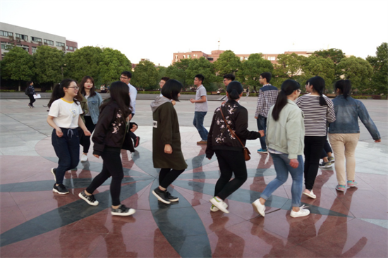 4月23日下午16:00,轻化11502班全体同学在图书馆前面的广场上进行了本学期的团体辅导。