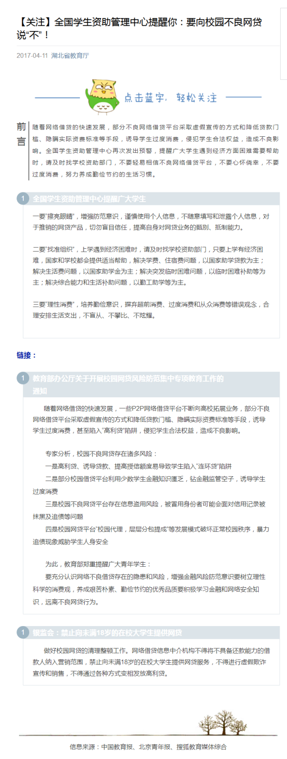 【关注】全国学生资助管理中心提醒你:要向校园不良网贷说“不”!
