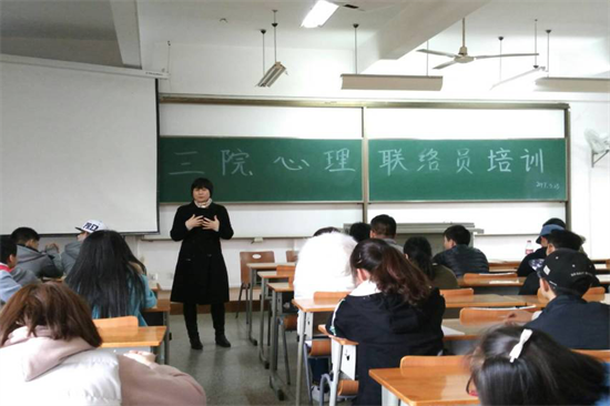 2017年3月23日,化工学院辅导员胡子英老师在06-210教室将化工学院、经济学院和环境学院的心理联络员聚集在一起,共同学习一位合格的心理联络员应该具备的基本素质。