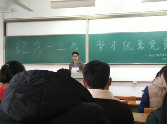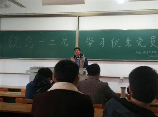 在学习“从严治党之重”的同时,轻化支部弘扬“一二九”学生运动精神,号召同学做一个有责任、有担当、有理想的青年,时刻怀有爱国之心,坚定党的信念,刻苦努力。并学习了一名优秀党员应具备的素质,向身边优秀党员学习。