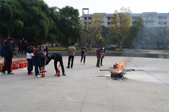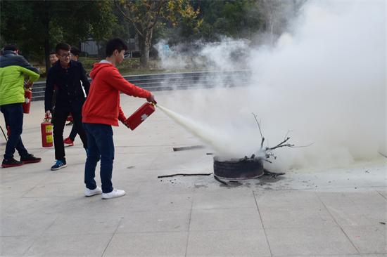 第二阶段,全体学生疏散完毕后,消防教官就火灾预防,面对火灾时如何自救等消防知识进行了讲解,还现场演示了灭火器的规范操作程序及使用方法。随后,消防教官们让同学们各自体验熟悉了灭火器的操作方法。