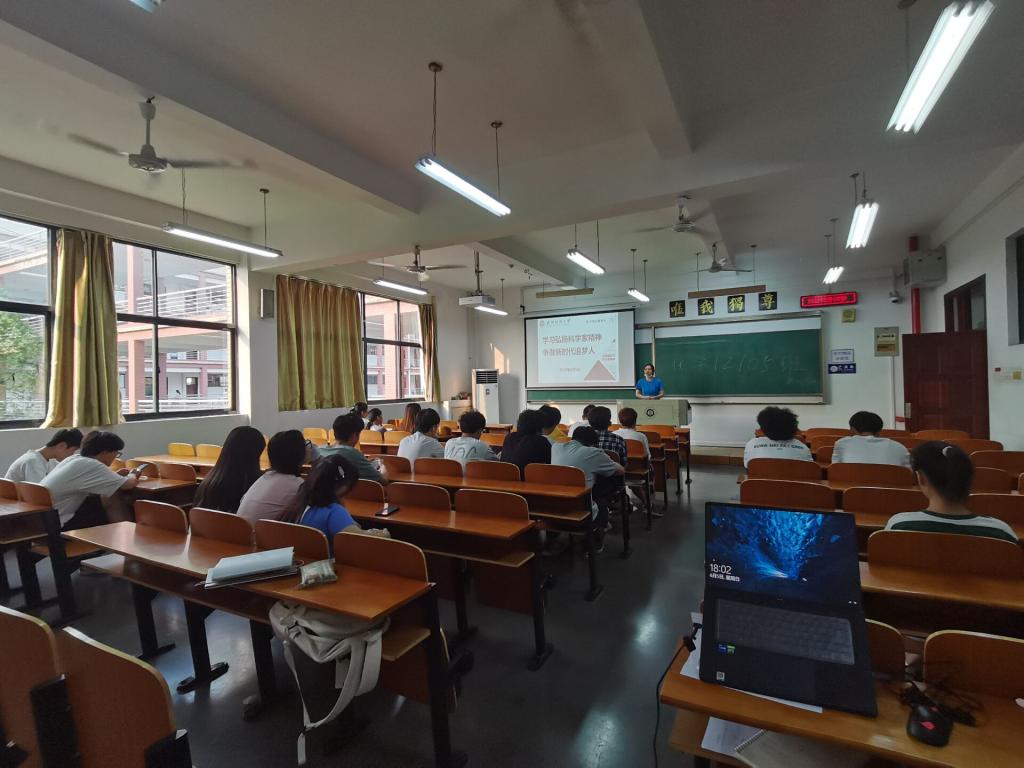化学类12105班班主任蔡永双讲到:为实现“两个一百年”奋斗目标、实现中华民族伟大复兴的中国梦,应在全社会大力弘扬以“爱国、创新、求实、奉献、协同、育人”为核心的新时代科学家精神,高度重视“人民科学家”等功勋荣誉表彰奖励获得者的精神宣传。