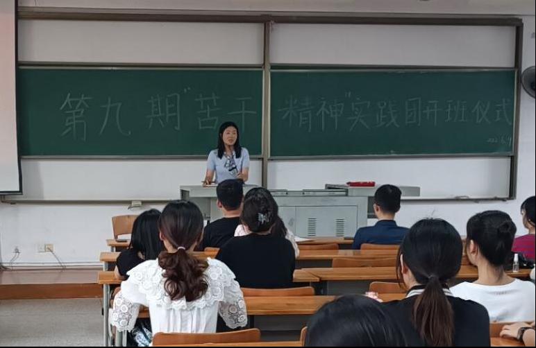6月9号下午13:00,化学与化工学院于崇礼楼210教室举行“苦干精神”实践团第八期结业暨第九期开班暨典礼,化工学院党委副书记尤雯文、苦干精神实践团指导老师郭捷、学院团委书记雍诚及谈鹏老师出席了此次典礼。典礼由苦干团团长马璇主持。