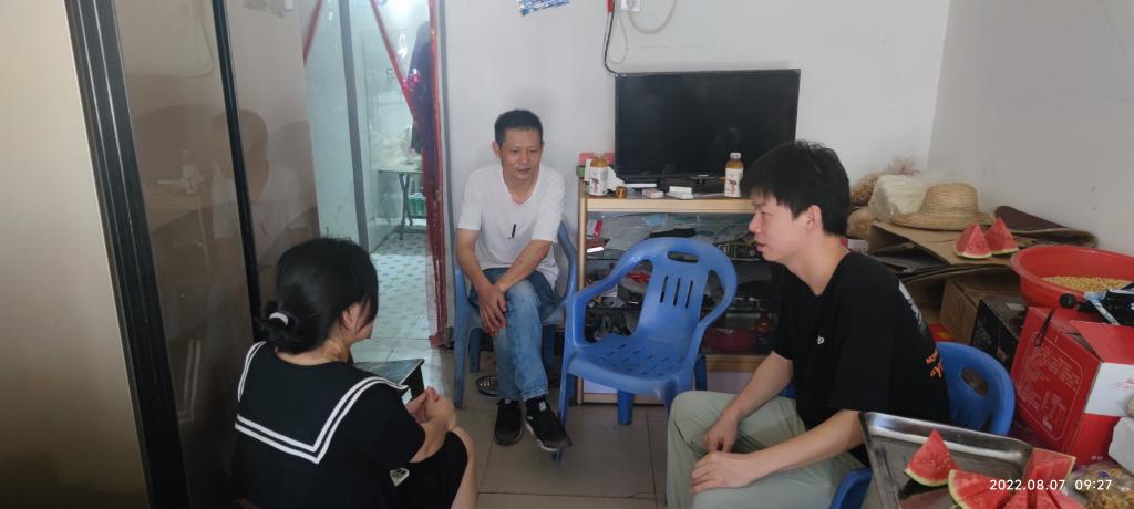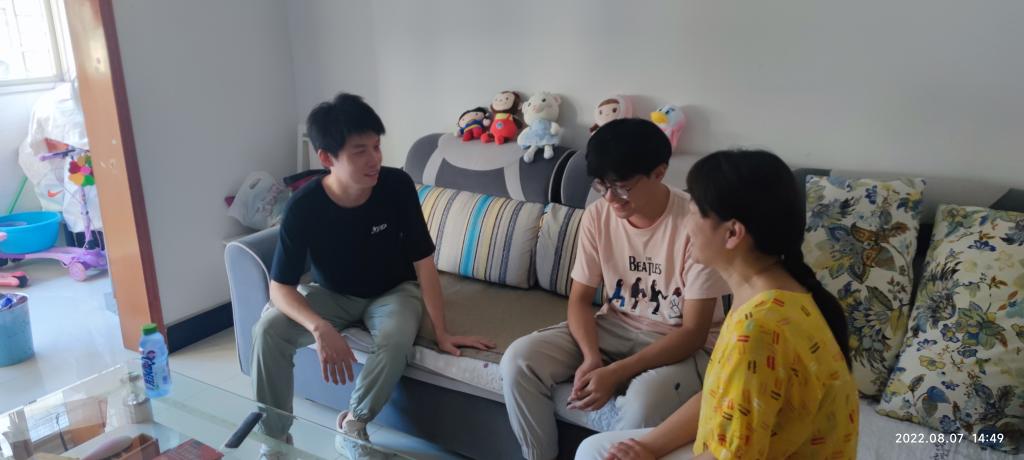 为着力打造全员、全过程、全方位的育人格局,不断优化“五帮五促”工作体系,落实好学校“下基层察民情解民忧暖民心”实践活动要求,武汉纺织大学开展暑期“百师进百家访百生”家访活动。8月7日,烈日当空,化工学院2021级辅导员雍诚前往鄂州市,开展暑期家访活动,了解学生家庭情况,交换学生在校信息,所到之处,把协同育人的举措落细、落小、落到“家”。
