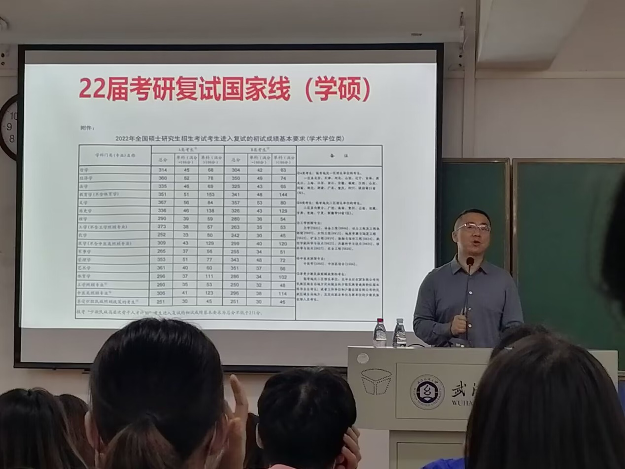 谭老师就考研整体情况.院校专业选择和备考策略等展开了详细分析。就尽早做好考研规划、明确考研目标、专业知识的学习以及专业素质的培养等方面,向同学进行了重点分析。他勉励同学们充分发挥自身优势,争取在考研中取得胜利,同学们现场认真聆听,积极提问,表示通过讲座,进一步理清考研备考思路,受益匪浅。