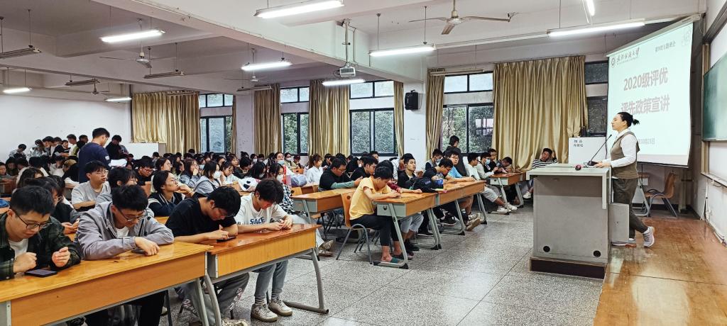 紧接着,各辅导员告诉同学们,获得以上奖项和荣誉,只有课程成绩是远远不够的,还需要进行全方位素质提升,强调学生综合素质测评是评定各类奖助学金、先进班集体和先进个人的重要依据。随后,各辅导员为同学们全面系统地讲解了综合素质测评的实施办法,鼓励大家积极参加学科竞赛和各项社团活动,在提高课程成绩的同时提升自己的素质能力。