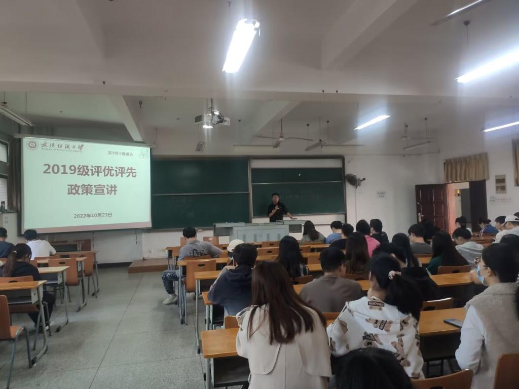 会议伊始,各辅导员针对学校和学院的奖助学金类型进行了简单的介绍,并帮大家梳理了学校可参评的先进班集体和先进个人的类别。接着,再为大家详细解读学校评优评先和奖助学金评定的相关文件,从奖励标准、申请条件、名额分配等方面介绍了先进个人、先进班集体评选和奖助学金评定的具体规定。在奖助学金评定方面,各辅导员着重分析了国家奖学金和国家励志奖学金的申请条件,鼓励同学们认真学习,向奖学金冲刺。