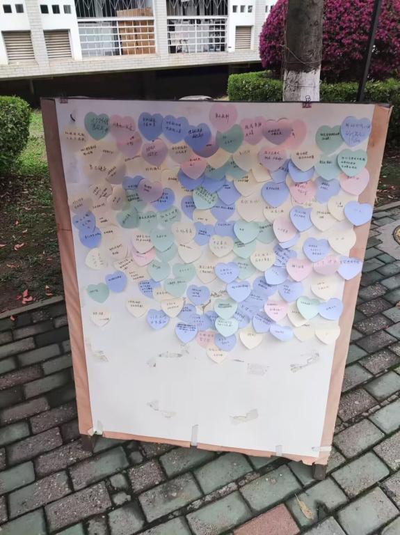 同学们纷纷提笔在便利贴上留言,许下善待自己、珍爱自己的郑重承诺,或是写下对自己、对他人的美好心愿与祝福。活动有效扫除了学习压力等负面情绪横亘在同学们心头的阴云,在大家心中播下了希望的种子,让他们怀揣着理想和信念继续勇敢前行。留言板上的心愿便利贴越来越多,上面记载的温暖与力量,也传递给了更多同学。