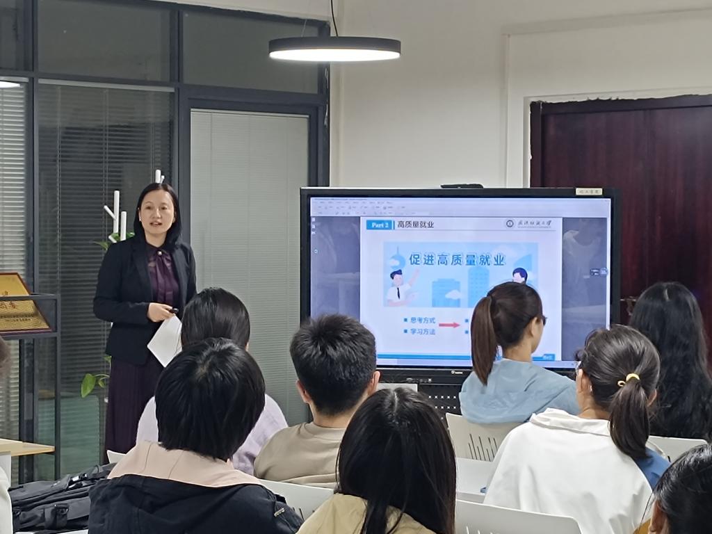 会上,毕曙光老师用翔实的数据向同学们展示近几年研究生的招生趋势、人数及所占比例,让大家对自己目前所处的现状有一个清晰的认知;毕老师高屋建瓴,用她丰富的经验、独到的眼光将目前就业常见的方式一一列举、详细介绍、分析优劣,让在座的同学们醍醐灌顶;她建议同学们从提升专业能力、增强综合素质、持续学习外语、积累人脉资源、注重健康管理、学习职场技能等方面不断提升自我,希望每一位同学都能有用健康的身体、认真的态度、乐观的心态面对一切挑战!