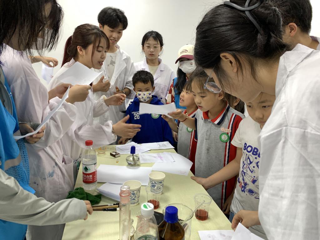 活动现场,志愿者们合理分工,每人都分有对应的学科,认真教导小朋友们。除了辅导小朋友们的学业作业,志愿者们充分利用自己的专业知识,带领小朋友做一些丰富多彩的化学小实验。通过这些小实验,激发了小朋友们对化学的兴趣,志愿者们在实验操作过程中讲述着原理,带给孩子们的不只有快乐还有小知识。