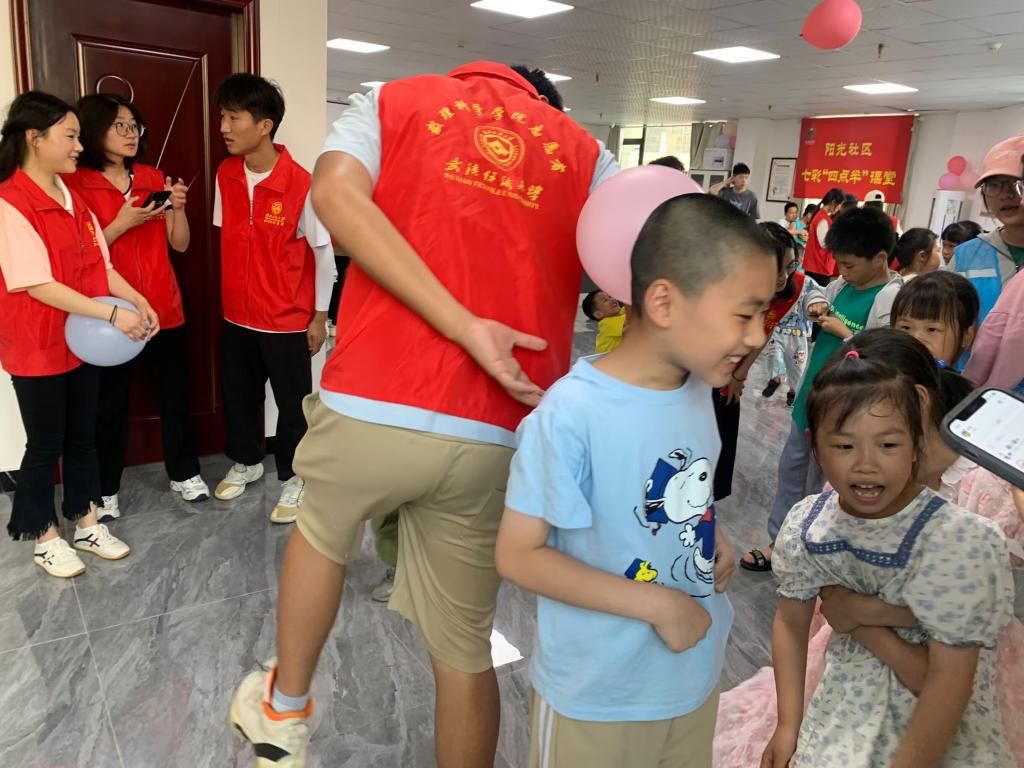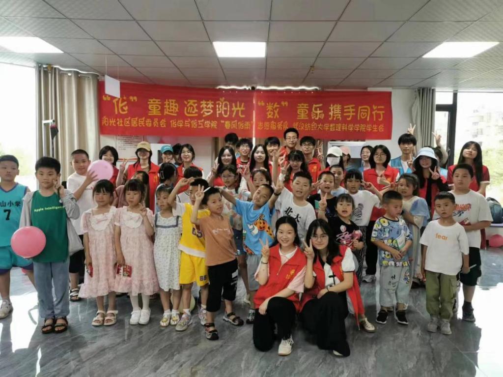 温暖相伴助成长,快乐时光过六一,又到了一年一度的“六一”儿童节,化工学院“春风化雨”志愿服务队携手数理科学学院学生会前往阳光社区开展了一场别开生面、精彩纷呈的“‘化’童趣,逐梦阳光,‘数’童乐,携手同行”主题活动,与社区20多名儿童共庆国际“六一”儿童节。