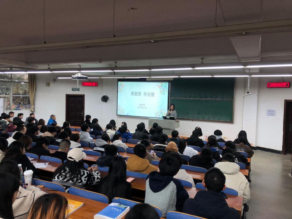 为进一步加强对学生的心理健康教育,培养学生健全的人格和良好的心理品质,提升学生的心理素质,切实提高学院心理健康教育工作实效。11月12日下午,化工学院邀请华中农业大学大学生心理健康教育中心专职教师、副教授崔凤华来我校举办“尊重爱 学会爱”心理健康讲座。该讲座在崇志楼T102教室举行,化工学院、环境学院全体心理委员参加了本次讲座,讲座由化工学院党委副书记莫德辉主持。
