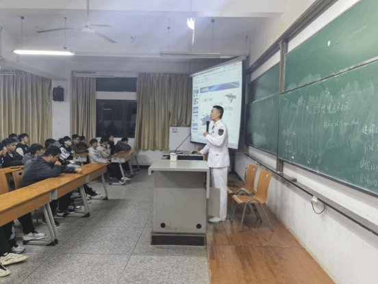 化工学院2021级本科生郝建设作为朋辈宣讲人,以自身入伍动机、入伍经历、入伍感受等内容,为学生们提供全方位的信息和机会,深入了解参军的先决条件和职责要求。学校武装部国防迷彩团的学生宣讲员则深入介绍了入伍待遇、入伍条件、入伍流程环节,普及入伍常识。辅导员和班主任则就入伍与考研考公的相关政策进行专门解读。