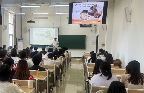 在讲座中,刘教授首先对南非大学的地理位置、校园环境、所取成果、开设专业以及课程做了简要介绍。之后结合自身研究成果,系统梳理了全球能源转型背景下南非氢能产业的发展路径。他指出,依托丰富的太阳能与风能资源禀赋,以及占据全球80%储量的铂族金属优势,南非正着力打造非洲氢能源经济示范区。通过解读南非政府2021年颁布的《国家氢能路线图》,刘院士重点剖析了南非在绿氢制备、储运技术创新及燃料电池研发三大领域的战略布局,并介绍了“氢谷”的建设动态。讲座还特别聚焦中非科技合作,详细分析了我国在可持续航空煤油研发、国家煤制化学品重大科技专项等领域的技术突破。