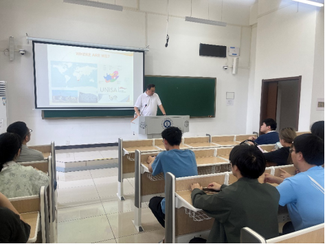 在互动环节,应化12302班王盛乾同学就南非科研环境与留学政策提问,刘院士结合自身海外执教经历,从学术生态、科研支持政策及跨文化适应等方面作出详尽解答。