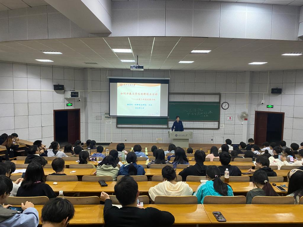 11月4日晚7点,化工学院大学生职业生涯规划讲座于崇德楼T101教室顺利开展,讲座以如何开展大学生创新创业活动为题,教务处(创新创业学院)孙杰副教授主讲,2021级全体学生聆听了讲座。