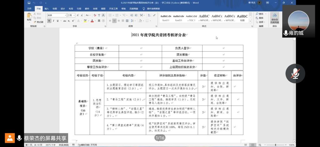 岁月不居,时节如流,上学期转瞬而逝。为了充分吸取上学期各项活动工作带来的丰富经验,更好的开展本学期的团学工作,3月9日下午6点,化工学院开展了团委学生会2022年上半年第一次工作会。响应学校防疫政策,本次会议采用线上形式召开,由团委书记雍诚老师主持,化工学院全体团委学生会成员参加。