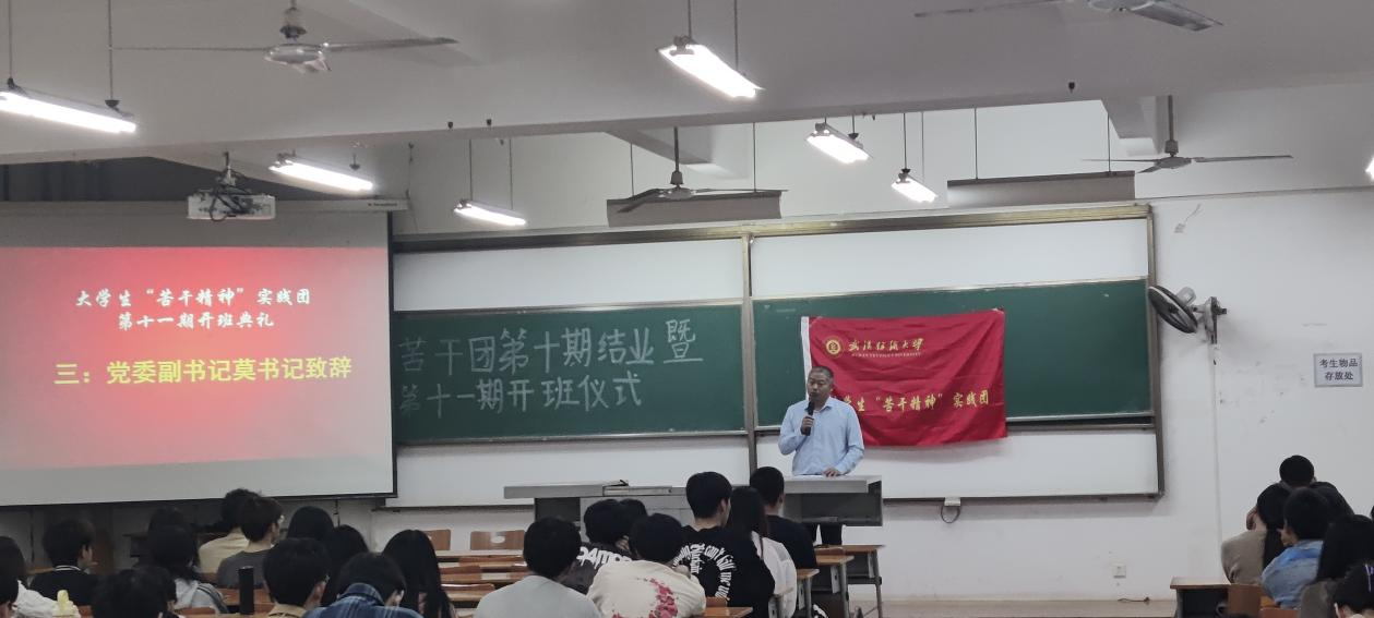 2023年5月10日中午,武汉纺织大学化学与化工学院大学生“苦干精神”实践团第十一期开班典礼在崇礼楼210教室顺利召开。化学与化工学院党委副书记莫德辉、全体辅导员及苦干团所有成员出席本次典礼,典礼由新晋苦干团团长张兆易主持。