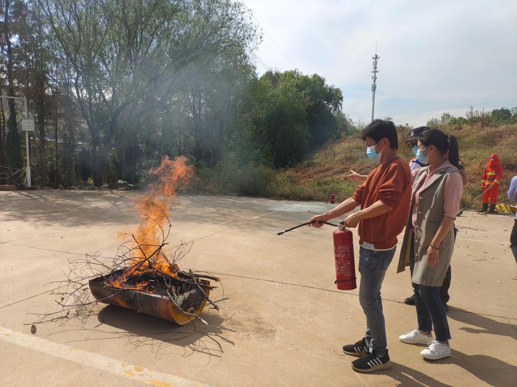 本次消防安全演练主要就消防器材的种类、使用方式、灭火方法以及注意事项、火灾隐患、应急自救常识进行了详细的讲解。在观看完灭火动作演示后,师生两两分组对灭火器的使用进行尝试、练习,初步掌握了灭火器的使用方法。