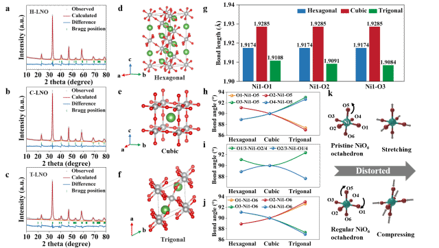 XRD and Rietveld refinements revealed significant variations in Ni–O bond lengths and angles among the phases. Jahn-Teller distortion in the NiO6 octahedra and changes in local electronic states were identified as key factors influencing structural stability and catalytic performance.