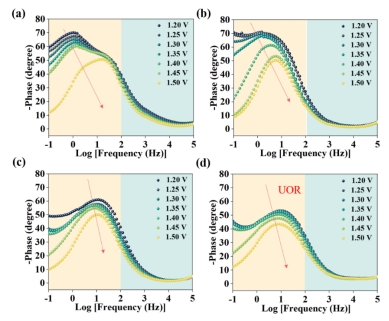 如图6所示,通过EIS测量揭示UOR反应动力学控制的复杂性,Bode图显示掺杂样品在较低电压下迅速展现显著的相位响应,暗示电子传递的增强促进了UOR的开始。
